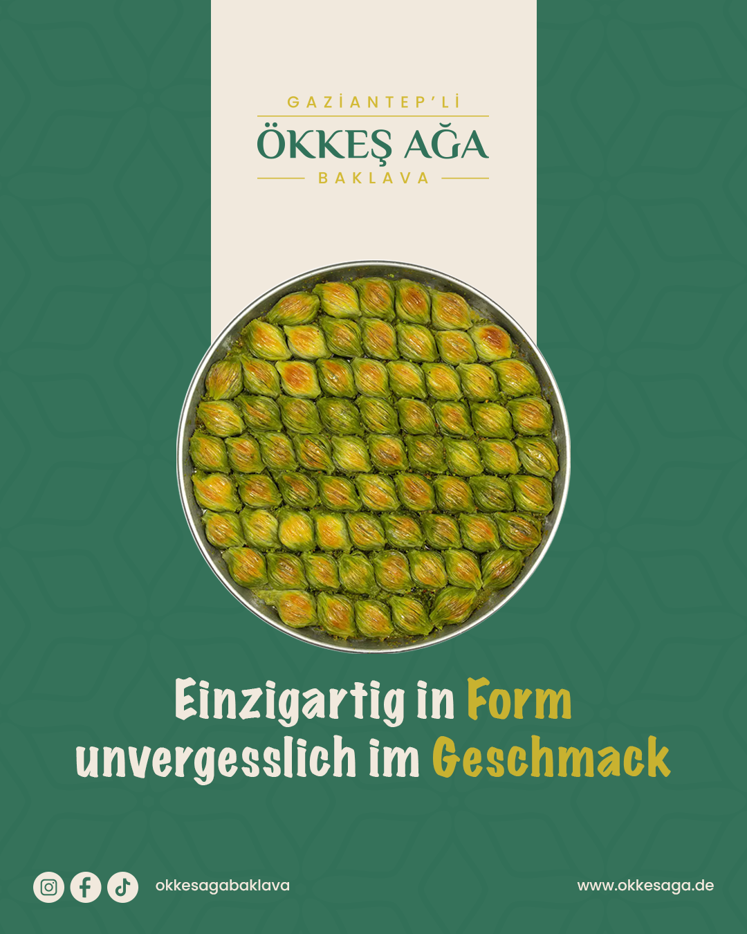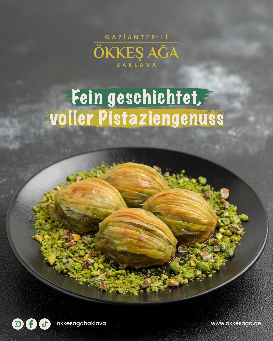 Genießen Sie die Qualität von Ökkes Ağa Baklava und holen Sie sich ein Stück orientalischer Genusskultur direkt nach Hause.
